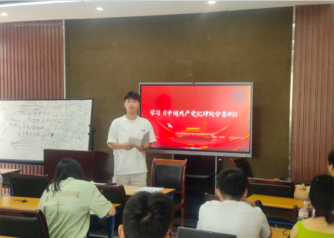 本科生党支部在学院210会议室召开了学习《条例》主题党日活动。本次学习会由支部组织委员杨子怡主持,第四党小组伍钊、黄彩俊和陈垣男领学,支部全体党员参加学习。