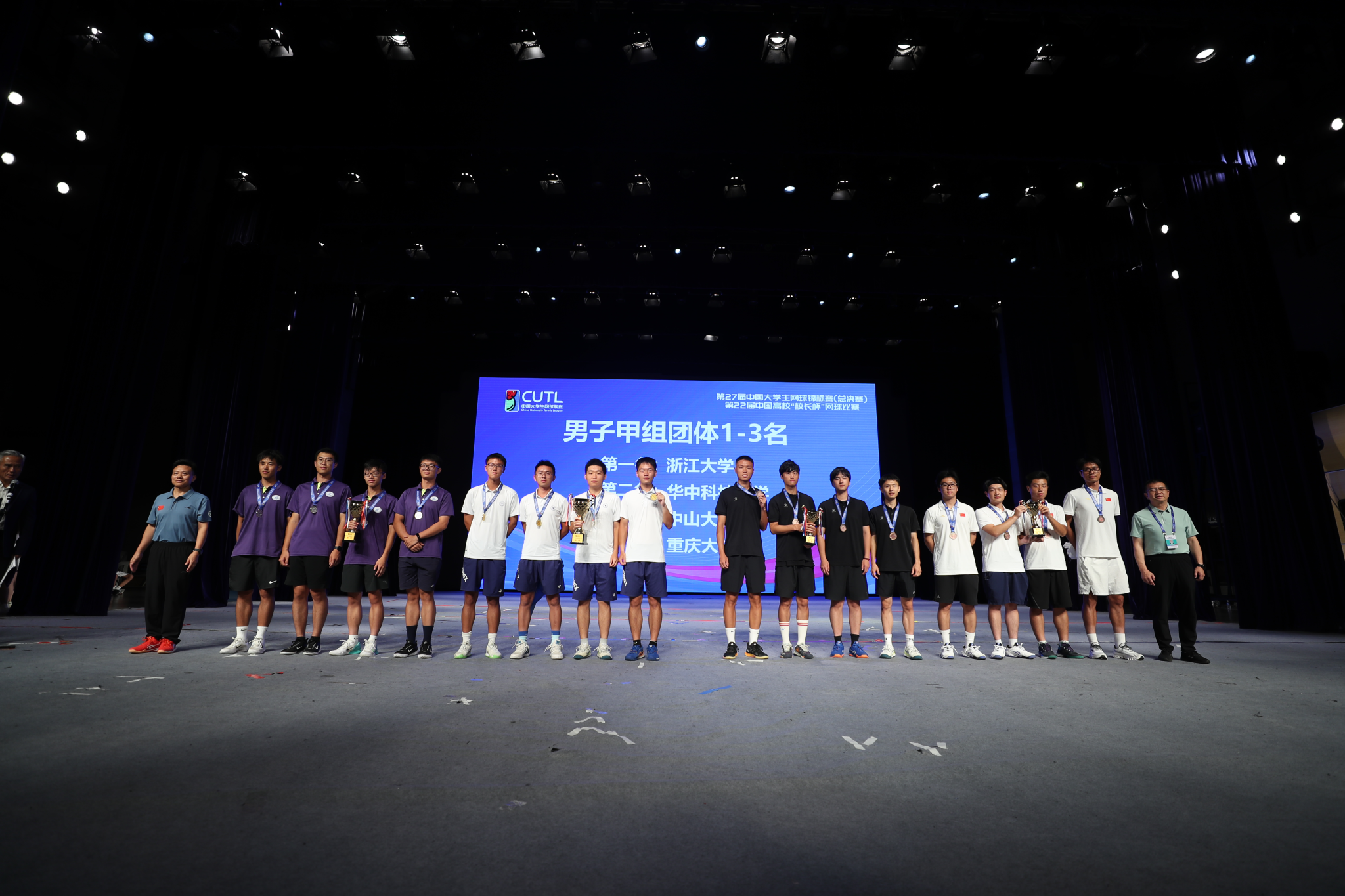 2024年7月24日至31日,第27届中国大学生网球锦标赛(总决赛)由中国学生体育联合会主办,中国学生体育联合会大学网球分会执行,上海大学承办。此次赛事吸引了众多高校的积极参与,经过八大分区赛的激烈角逐,最终共有众多高校的运动员脱颖而出,齐聚上海大学宝山校区,共同争夺总决赛的荣誉。同时,第22届中国高校“校长杯”网球比赛也作为配套赛事同步进行,吸引了来自全国多所高校的校长运动员参与。444咖啡 网球队经过不懈努力和顽强的拼搏,在100多所高校参赛队伍中突出重围,取得甲组团体季军。团队成员包括:潘建华(领队兼教练)、王晓(教练)、钟晋(教练)、黄丹丹(教练)、朱庚寅(工作人员);李佳鸿、雷铮宇、潘鸿仪、尹成毅(甲组);潘鹏远、赵宇龙、刘海棚、邹子睿(乙组);王文昊、刘爱、曹婧妍、罗塽(乙组);曾德勇、魏跃、陆洪(丙组)。