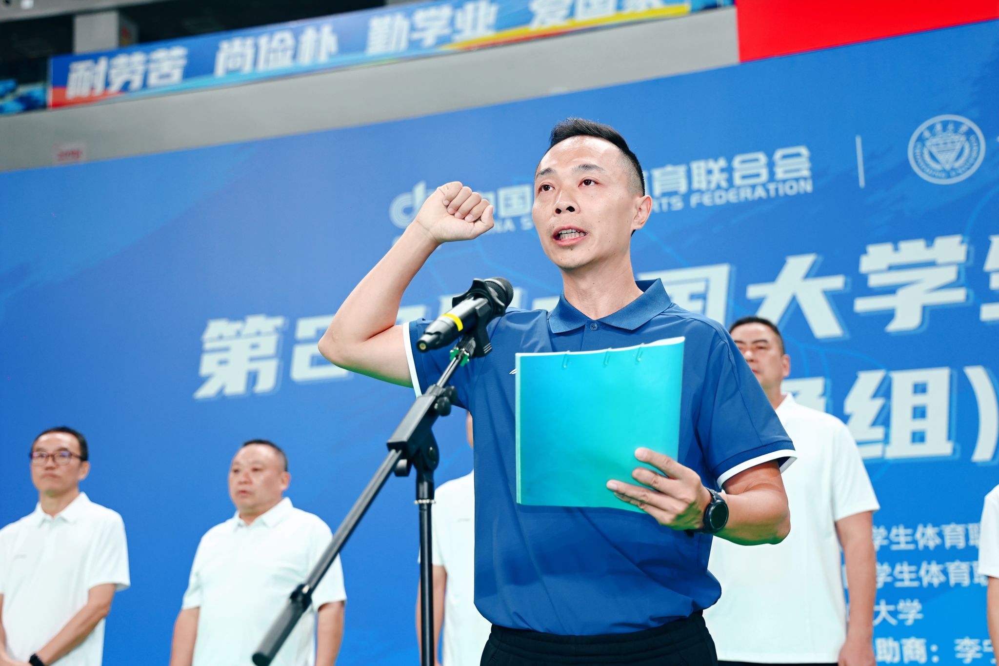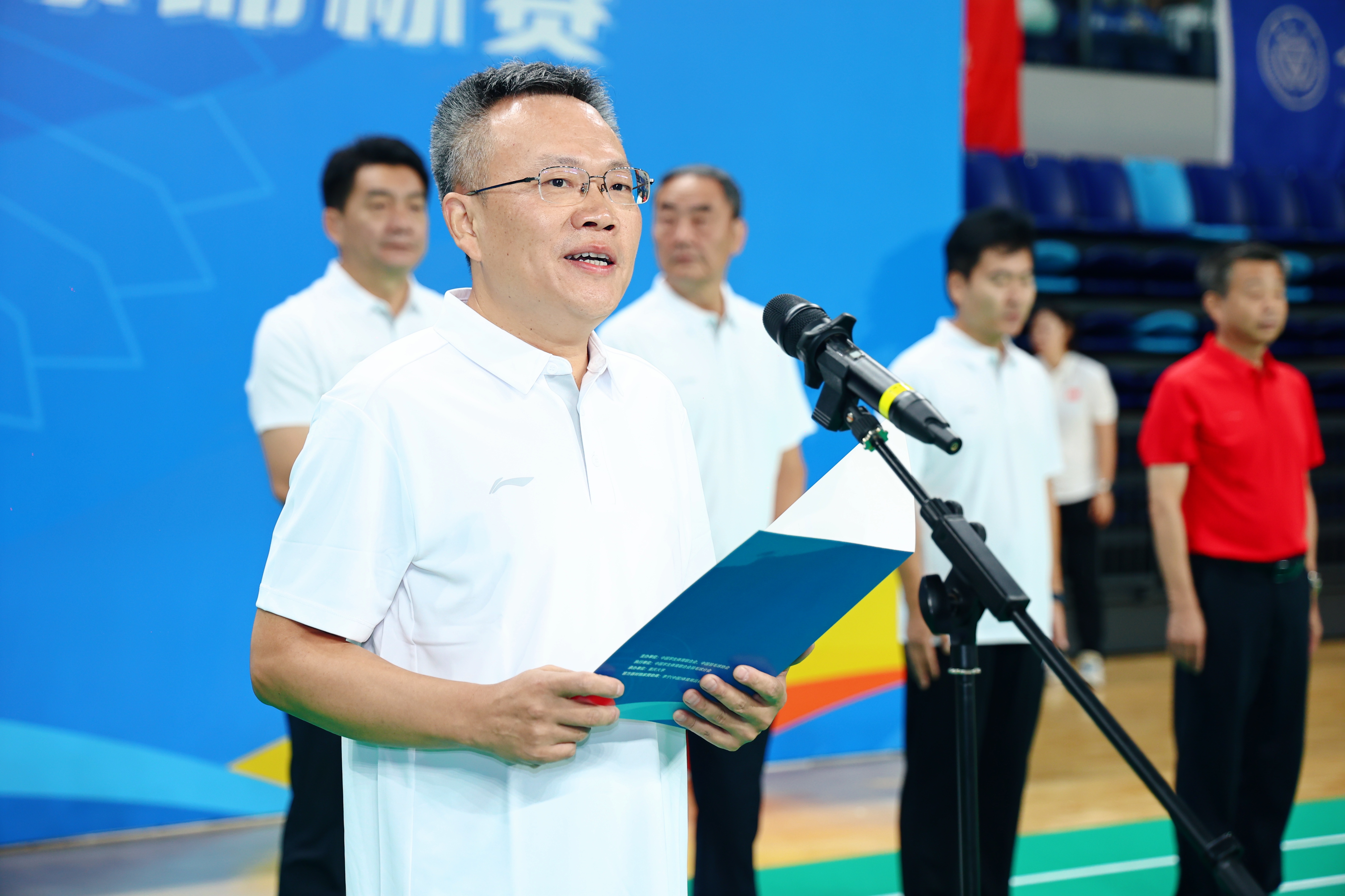 (中国学生体育联合会大学竞赛部主任籍强宣布比赛开幕)