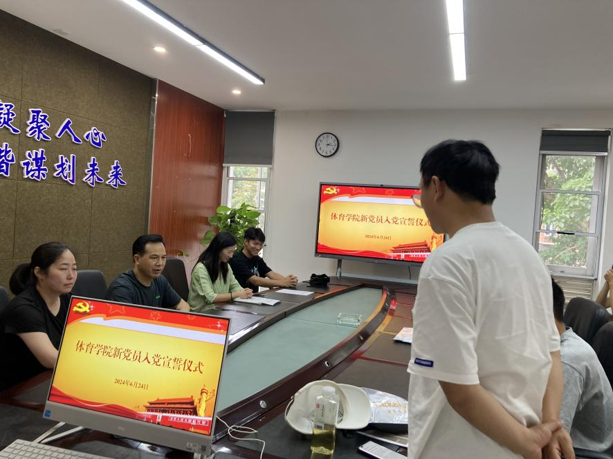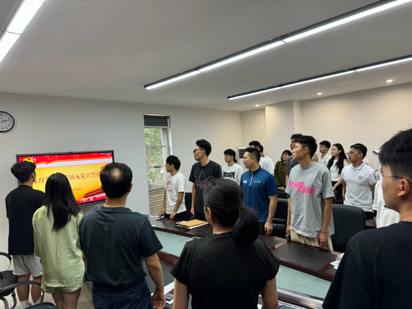 于2024年6月24日下午在211会议室举行新发展党员入党宣誓仪式。学院党委书记明兴建、本科生党支部书记汤婕、研究生党支部书记李莎以及全体学生党员参加宣誓仪式。宣誓仪式由组织员陈亭主持。