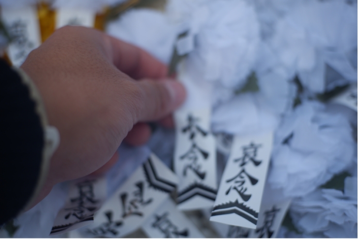 在宣誓结束后,集体为革命先烈献上白花,本科2021级学生在此次活动中深受感触,激起了他们向党靠拢的强烈愿望。献花结束后,所有人员手持国旗和党旗齐唱《我和我的祖国》与《歌唱祖国》,拍摄视频记录,表达自己对祖国对党的无限热爱。