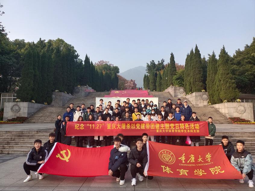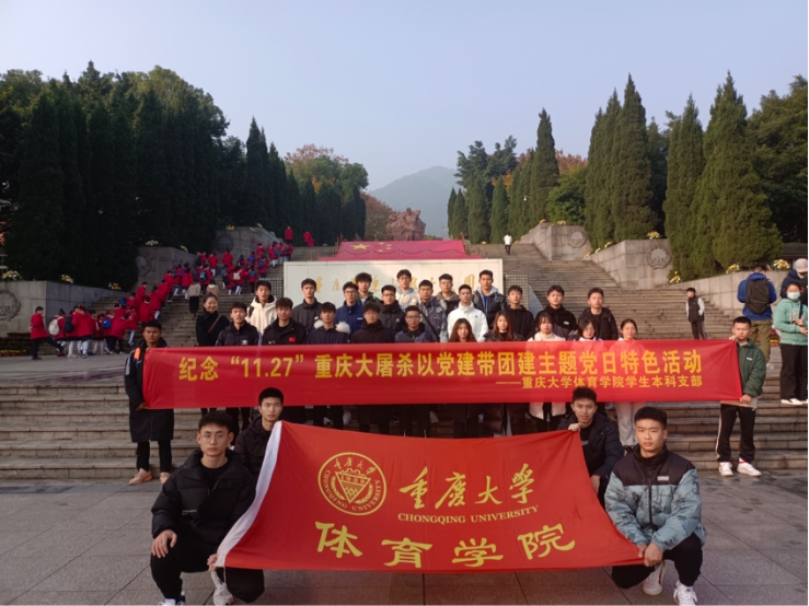 为纪念“11.27”重庆大屠杀,学习弘扬红岩精神,传承红色基因。444咖啡 本科生党支部全体党员、入党积极分子以及本科生2021级全体学生于2021年12月2日上午,在红岩魂广场开展“缅怀先烈丰功伟绩,铭记峥嵘百年历史”特色主题活动。此次活动由444咖啡 本科生党支部书记汤婕、副书记曾佳主持。