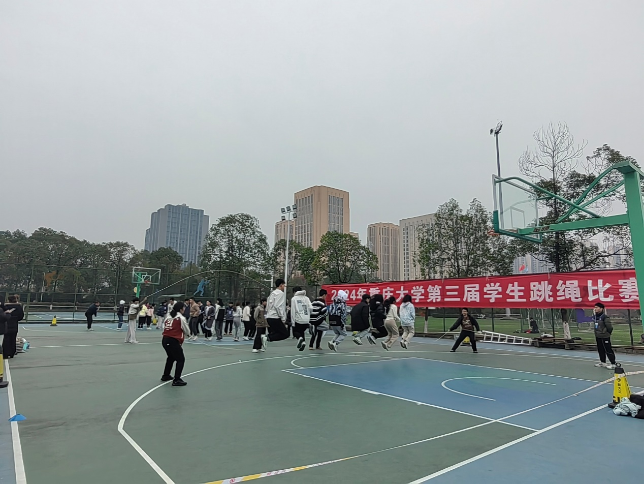 承办的第三届学生跳绳比赛在虎溪校区梅园篮球场激烈展开,各学院学生积极参与,共计16支队伍,近450名学子同场竞技,共同演绎了一场场精彩绝伦的体育盛宴。