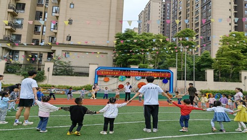 随后由三个小组所组成的小老师们分别带领着孩子们开展了体能课、篮球课和跳绳等特色体育课,在园内充满了运动的激情和孩子们的欢声笑语。