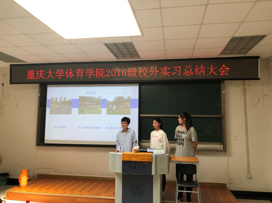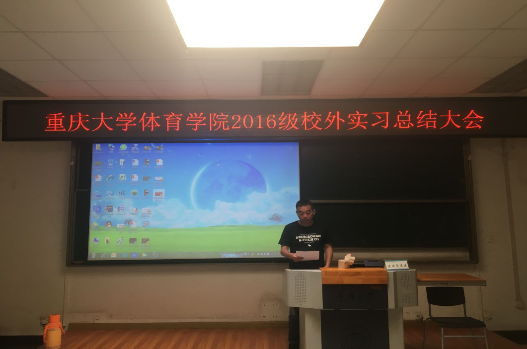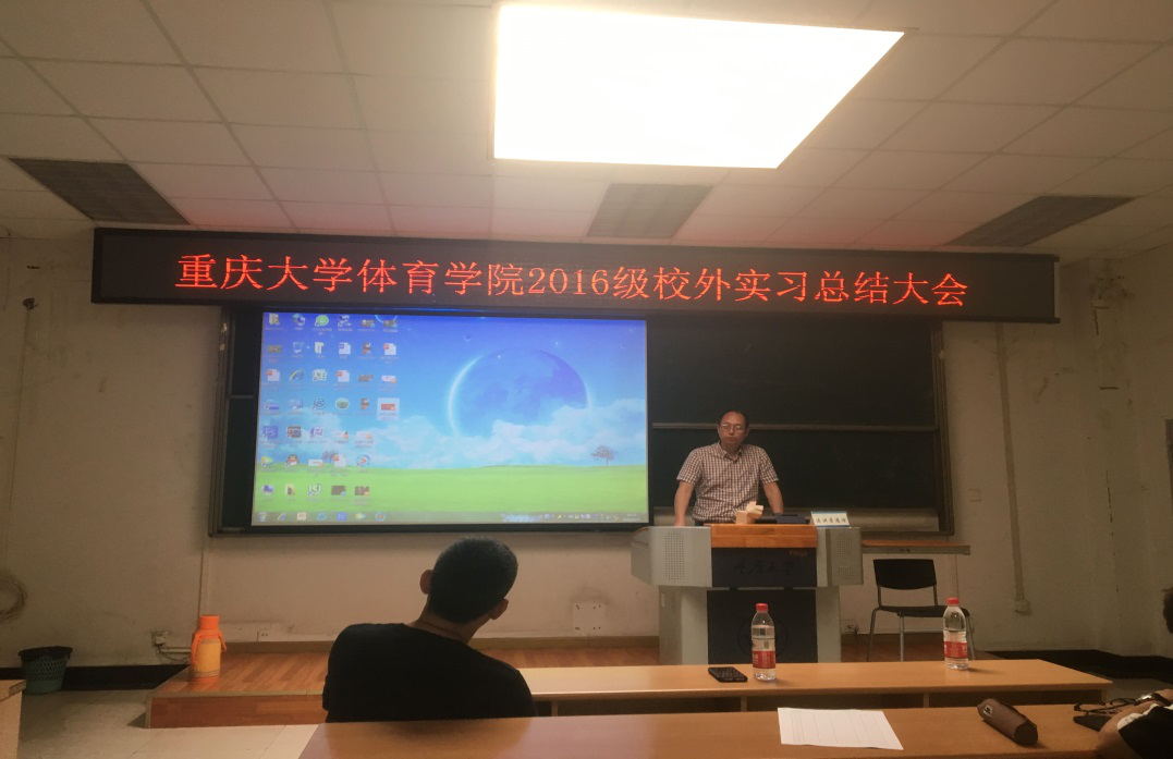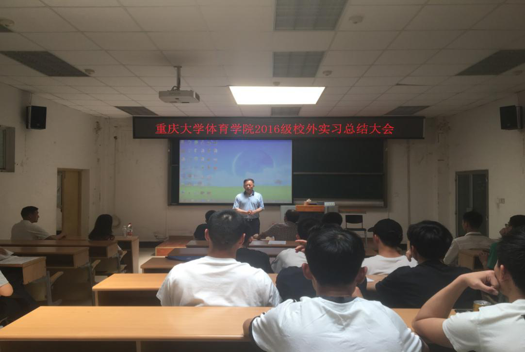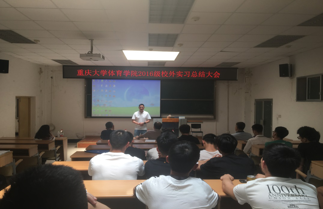 4月25日下午,444咖啡 2016级学生校外实习总结大会在学院阶梯教室举行。学院院长许定国、党委副书记李永、副院长落云柯、院团委书记汤婕及2016级本科生参加了本次会议。会议由学院体育教育系主任娄方平主持。