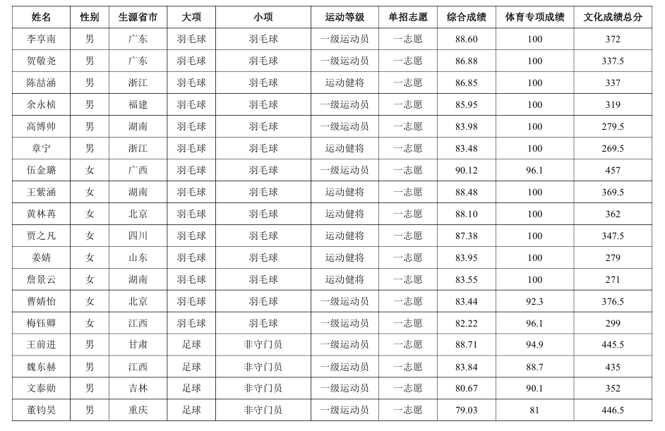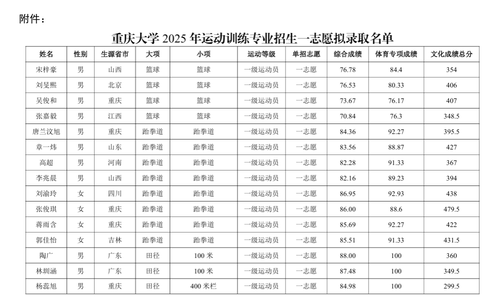 赵一朴付钰暄、林一凡、唐晨亮等同样在全国赛事中摘金夺银的优秀青年选手也成功入选。他们与通过一志愿、二志愿选拔录取的众多优秀学子一起,共同构成了首届运动训练专业星光熠熠、实力强劲的新生阵容。
