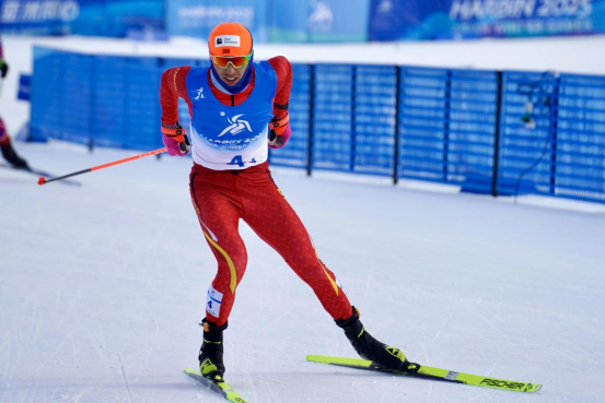 王强在第九届亚冬会比赛中斩获两金,两度刷新中国越野滑雪历史)