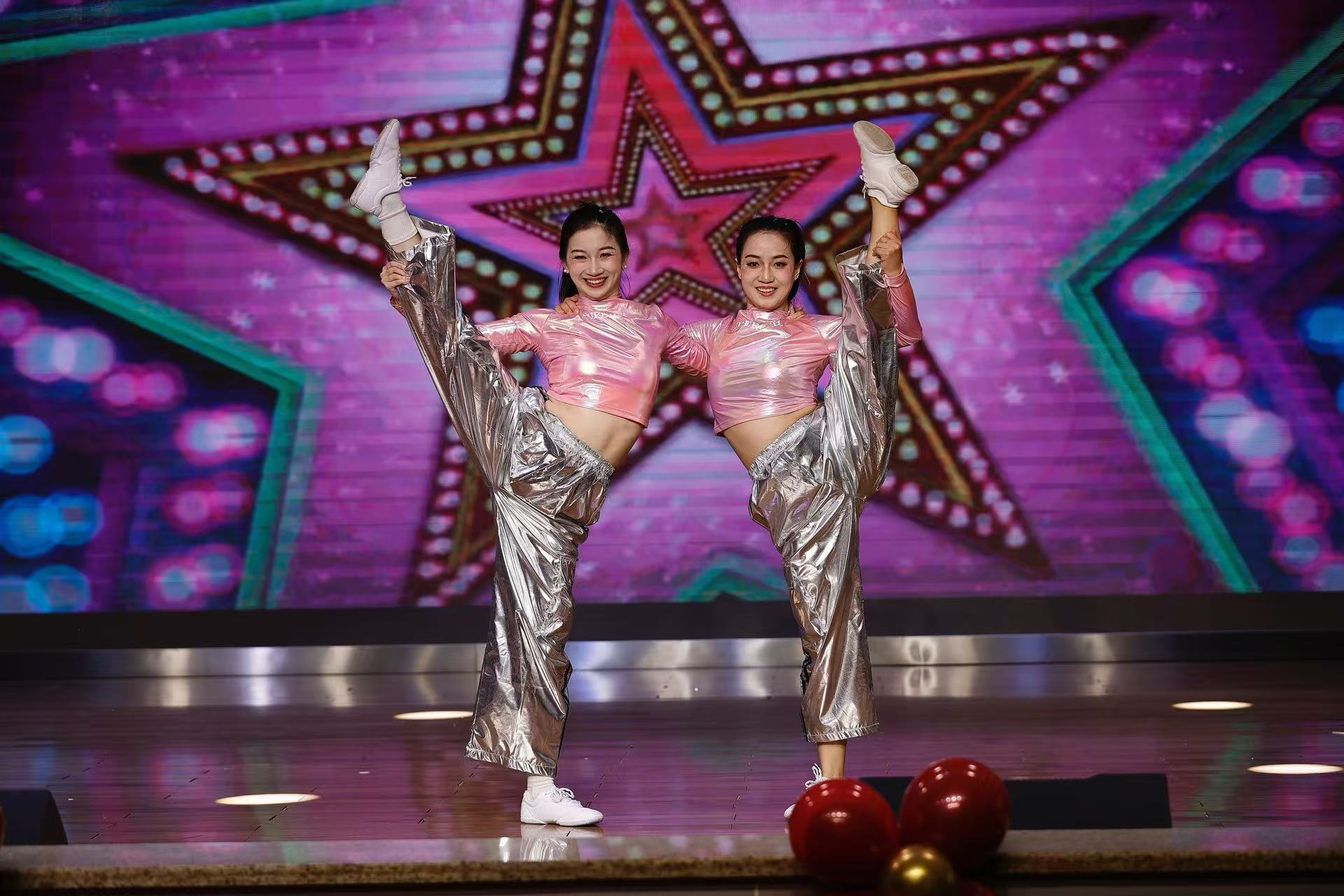 第二个节目为汤婕与周任洁两位老师带来的排舞表演。该节目曾获得重庆市首届高校教职工健康活力大赛第一名。