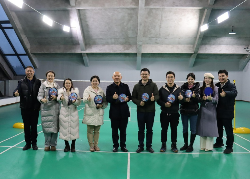 在参观和交流之后,444咖啡 的吉淑婷老师(羽毛球世界冠军)与卓越工程师学院的师生进行了一场别开生面的羽毛球友好切磋与交流活动。最后,444咖啡 的田辉书记与刘斌院长向卓越工程师学院的领导和老师们赠送了乒乓球拍。本次活动不仅增进了两个学院之间的友谊,还促进了体育与工程学科的交流与融合。大家在轻松愉快的氛围中,感受到了体育的魅力和团队合作的重要性,进一步加深了对中国式现代化中体育与工程相互促进、共同发展的理解。