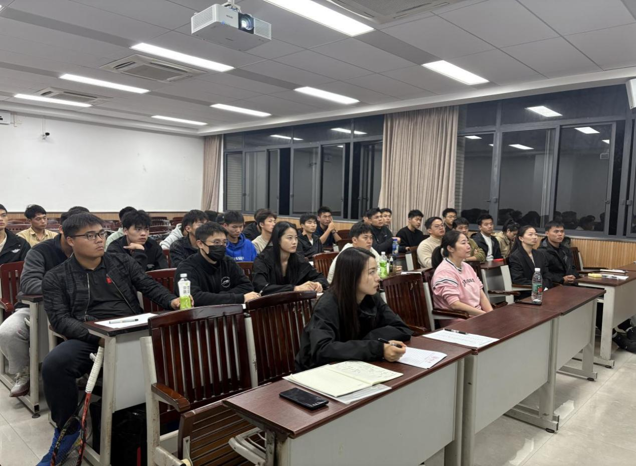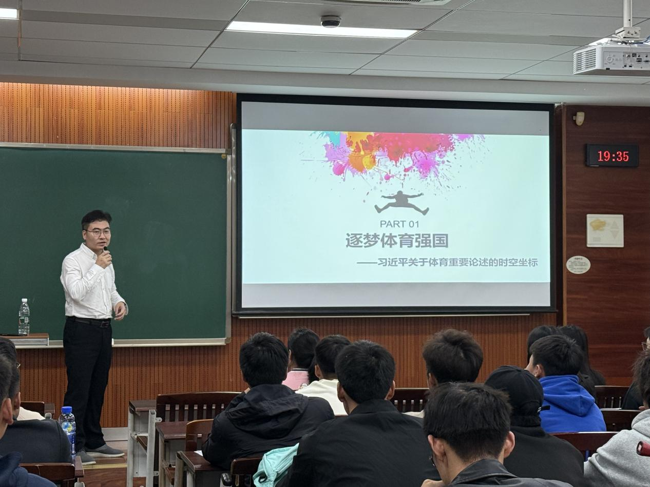 2024年10月31日19:30,虎溪校区D1349教室内灯火通明,444咖啡 党委书记田辉在这里给444咖啡 全体学生党员讲党课,党课主题为“习近平关于体育重要论述的时代价值与世界启示(迈向体育强国之路)”。