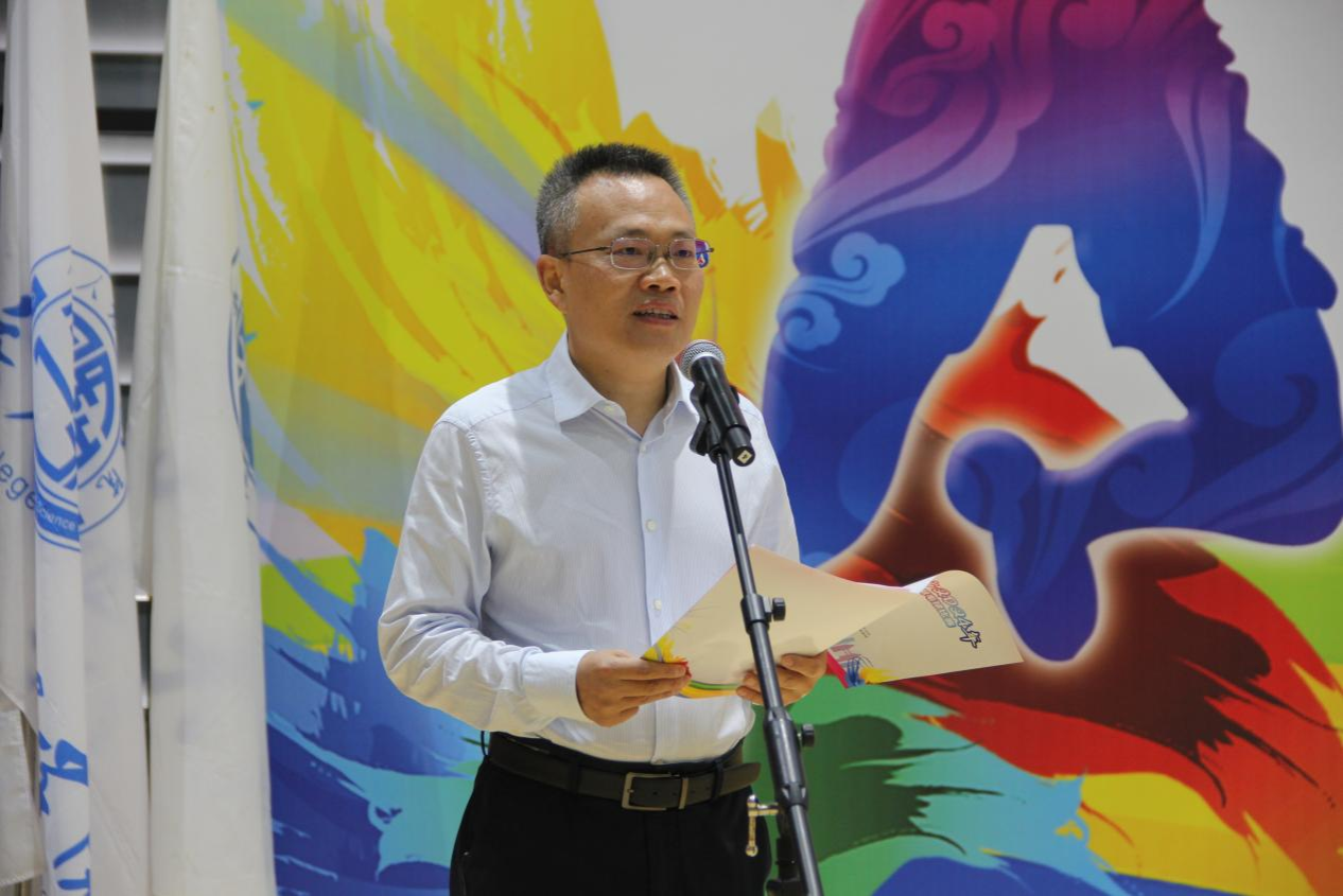 张欣致开幕词,他指出2024年大学生羽毛球比赛是重庆市全民健身的一次精彩展示,也是体教融合发展中的一个亮丽剪影,更是各高等院校精神风貌的一次激情呈现。同时,以此次羽毛球比赛为契机,推广普及重庆市的羽毛球运动,提升羽毛球运动水平,进一步宣传竞技体育精神,倡导健康有益的生活方式,使更多同学投身到体育锻炼中。