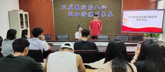 会议开始,由汤婕分别介绍了入党积极分子刘琦、仁李、廖蓉姿、黄彩俊和陈垣男等各位同志的基本情况,并强调学生加入中国共产党的重要性和使命责任。