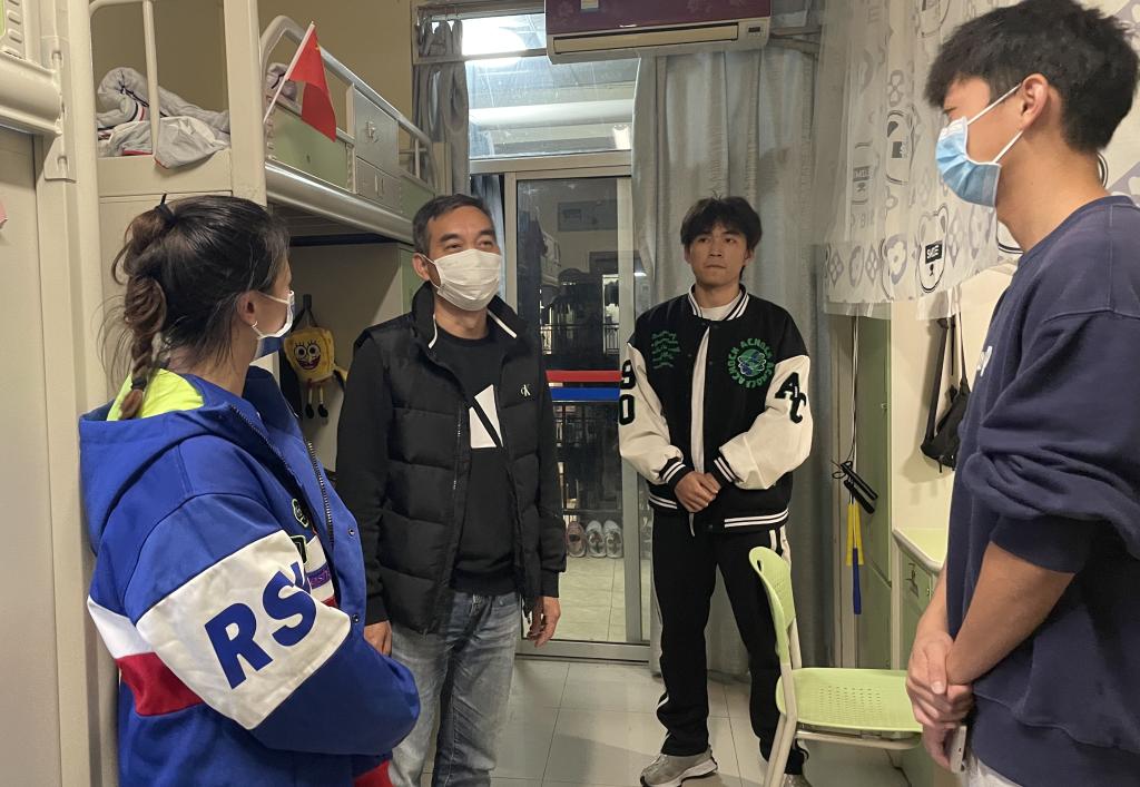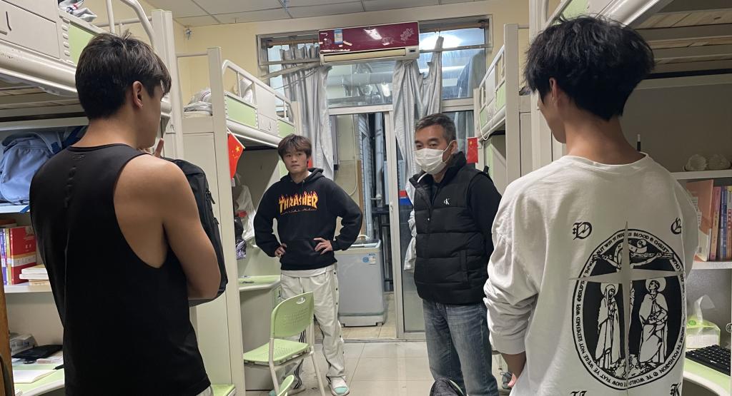 走访学生寝室时,每到一个寝室李永都会亲切的询问学生的生活起居、网课状态以及疫情防控等情况。