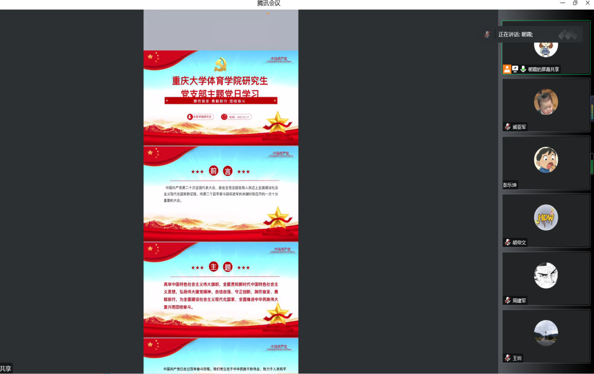 研究生党支部开展线上会议,支部全体党员参加,会议由支部书记刘朝霞主持。