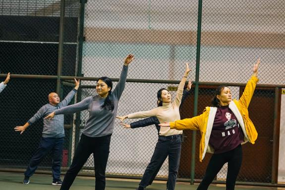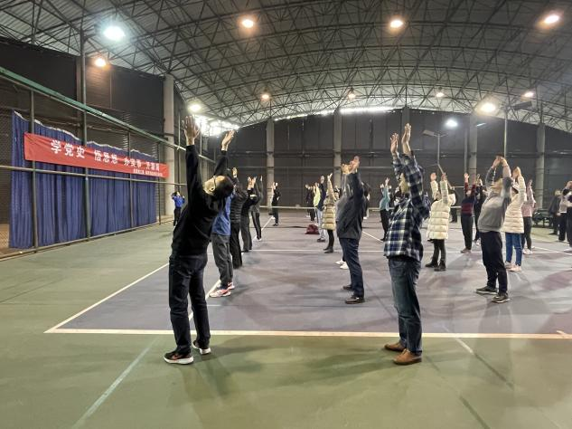 活动开始前汤婕同志带领在场的老师和学生们一起做热身操,通过热身激活大家身体的运动机能,为后续运动做好准备。