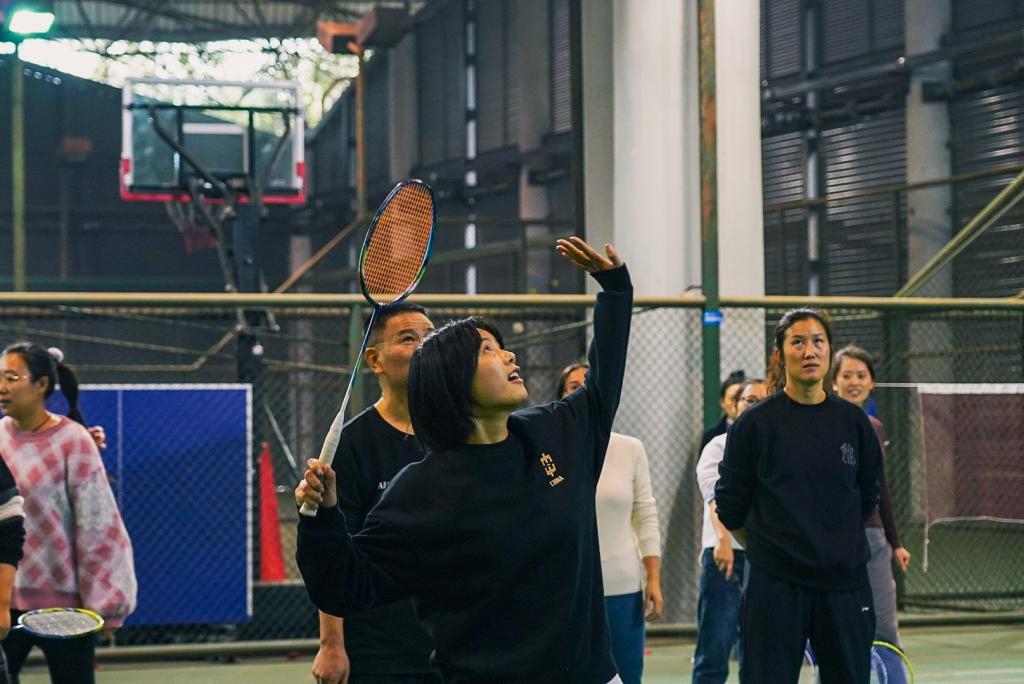 羽毛球活动在张东黎老师组织下同时开展,她讲解了羽毛球的正反手握拍动作和正手及高远球打法,参与羽毛球活动的老师们积极配合认真学习,收获了羽毛球的基本技术知识,随后老师与助教之间进行了的单双打比赛。