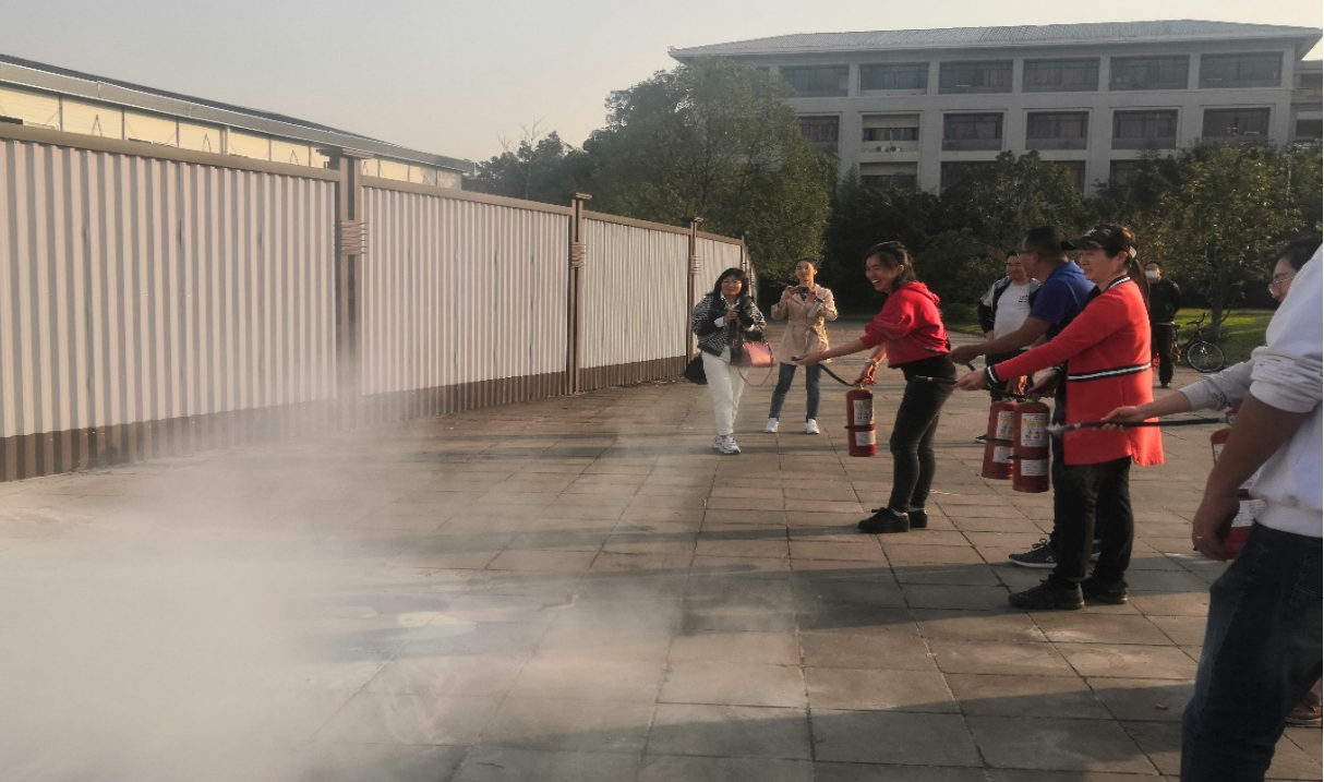 讲座结束后,与会的师生一同参加了学校保卫处组织的消防演习活动。