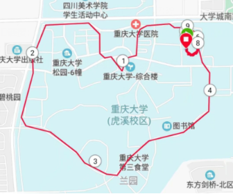 虎溪校区的地形,在虎溪校区内成功跑出长为5.20km的爱心图案,并且环绕虎溪,带领20级新生熟悉校园环境。