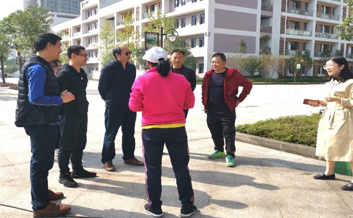 院长许定国、副院长落云柯和体育教育系主任娄方平一行,前往重庆市大学城第一中学校看望正在进行教育实习的2017级校外实习学生。