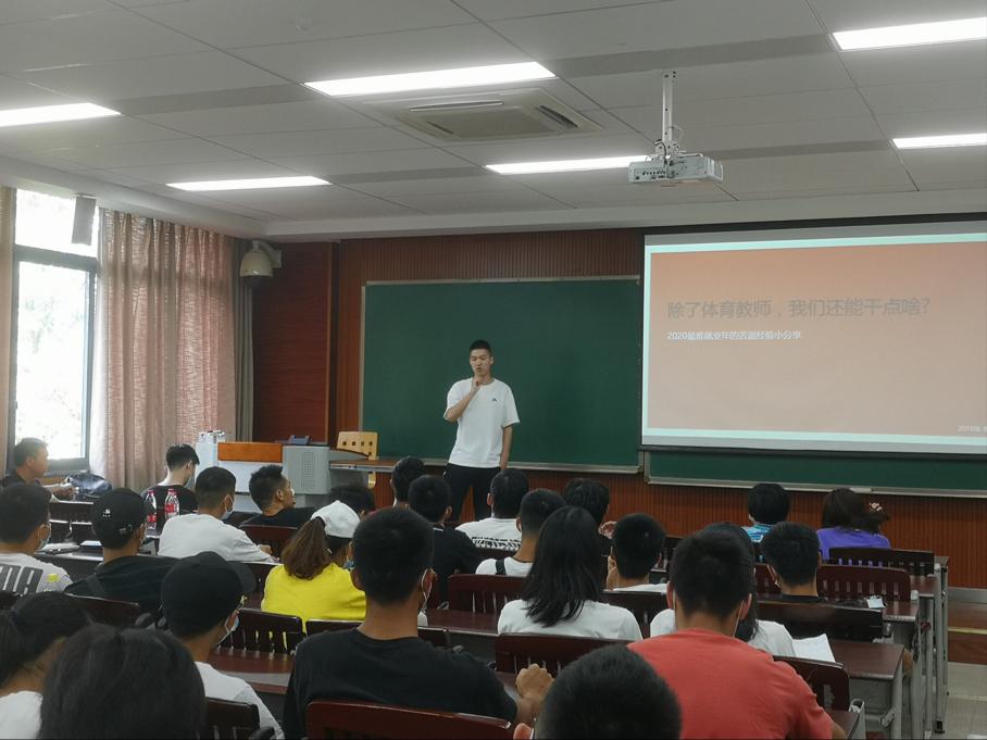 三位校友分别从关于体育教师就业以及中学体育现状,考研历程与经验分享以及如何找到一份非专业对口工作的经验三个方面与大家进行了分享交流。