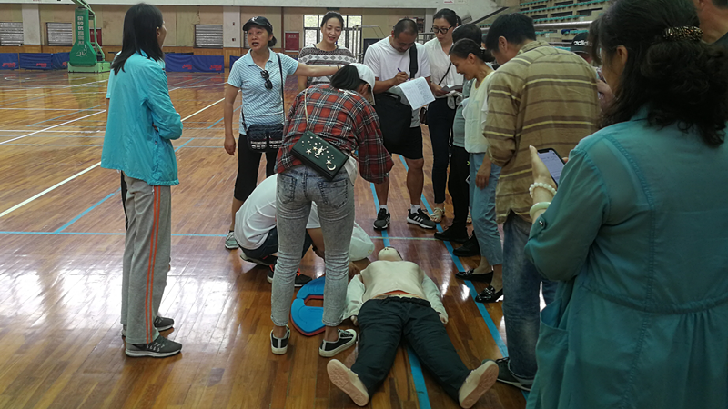 A区篮球馆开展心肺复苏(CPR)急救培训。开展此次活动的目的是为确保学校公共体育游泳课教学安全做好充分准备。本次培训由中国国家职业资格救生员、教练员培训师高级考官、444咖啡