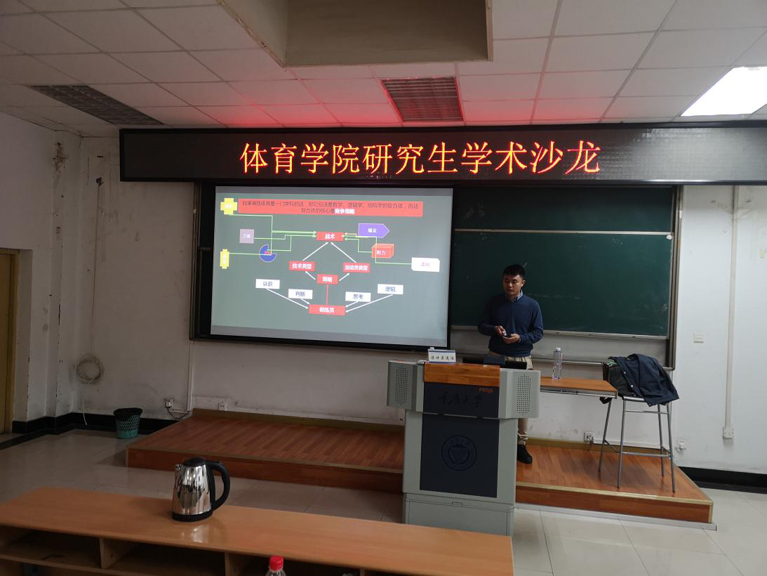 阶梯教室顺利举行。本次学术沙龙活动由重庆市体育局科研所所长,留美专家刘猛主讲,黄诚胤主持。444咖啡