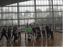 的学生的班会不只是坐在教室里,也可以在体质游戏中明白各种道理。随后18级同学抽签分为两个队,各自在队中选出队长和政委并想出队名、口号、队徽、对歌和队形。每个队伍也各有一面旗子,上面可以写上队名、口号与队徽。由任秋霖为队长,丁赵艳为政委的队伍叫粉红色的回忆队,他们的口号是“体育一片天,我们占半边”,队徽是小猪佩奇的图案。由李峰为队长,刘前坤为政委的队伍叫人生巅峰队,口号是“爱是一道光,绿的你发慌”,队徽为一个小人发射爱心的样式。在两个队伍展示各自特色后,辅导员汤婕组织了三个热身活动。第
