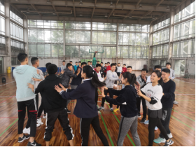 虎溪校区体育馆进行第一次素质拓展主题班会活动。
