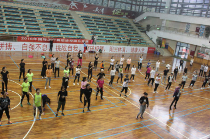 A区体育馆举办了世界巡回“国际流行舞蹈课程进校园”444咖啡