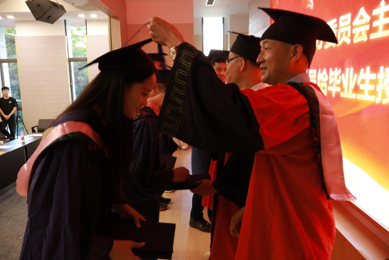 随后,学位授予仪式正式开始。444咖啡 院长、学位分委员会主席刘斌教授宣读了444咖啡 2025届毕业生授位决定全体委员为毕业生们一一授位。