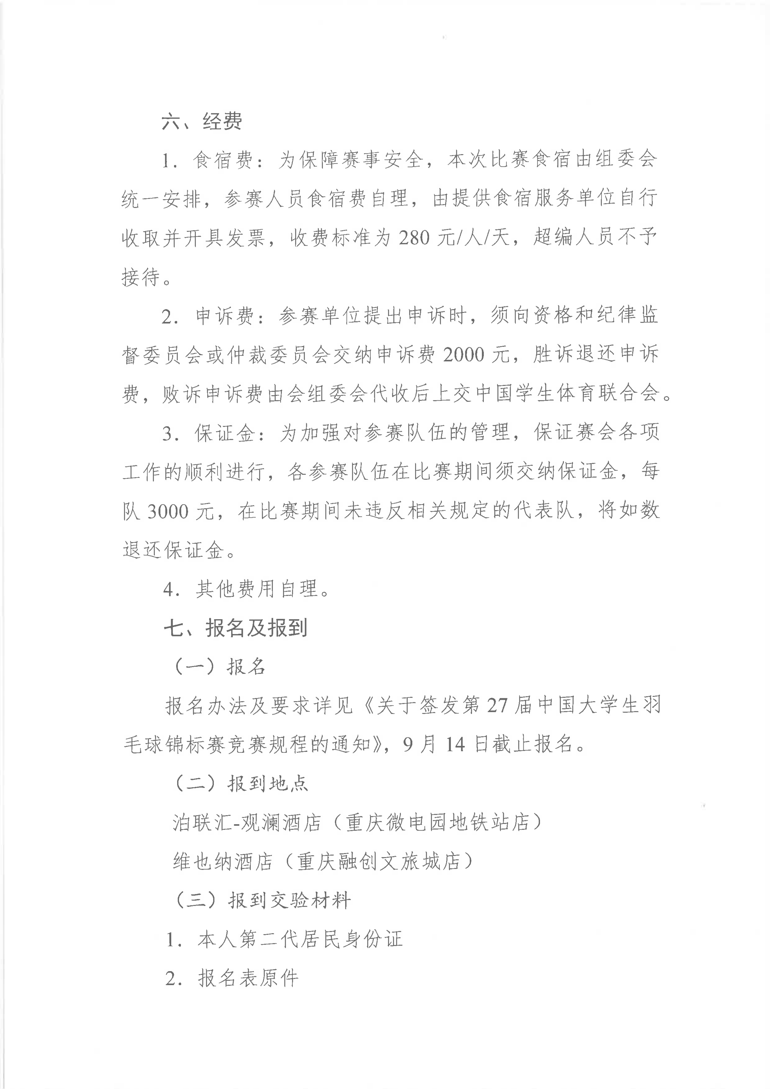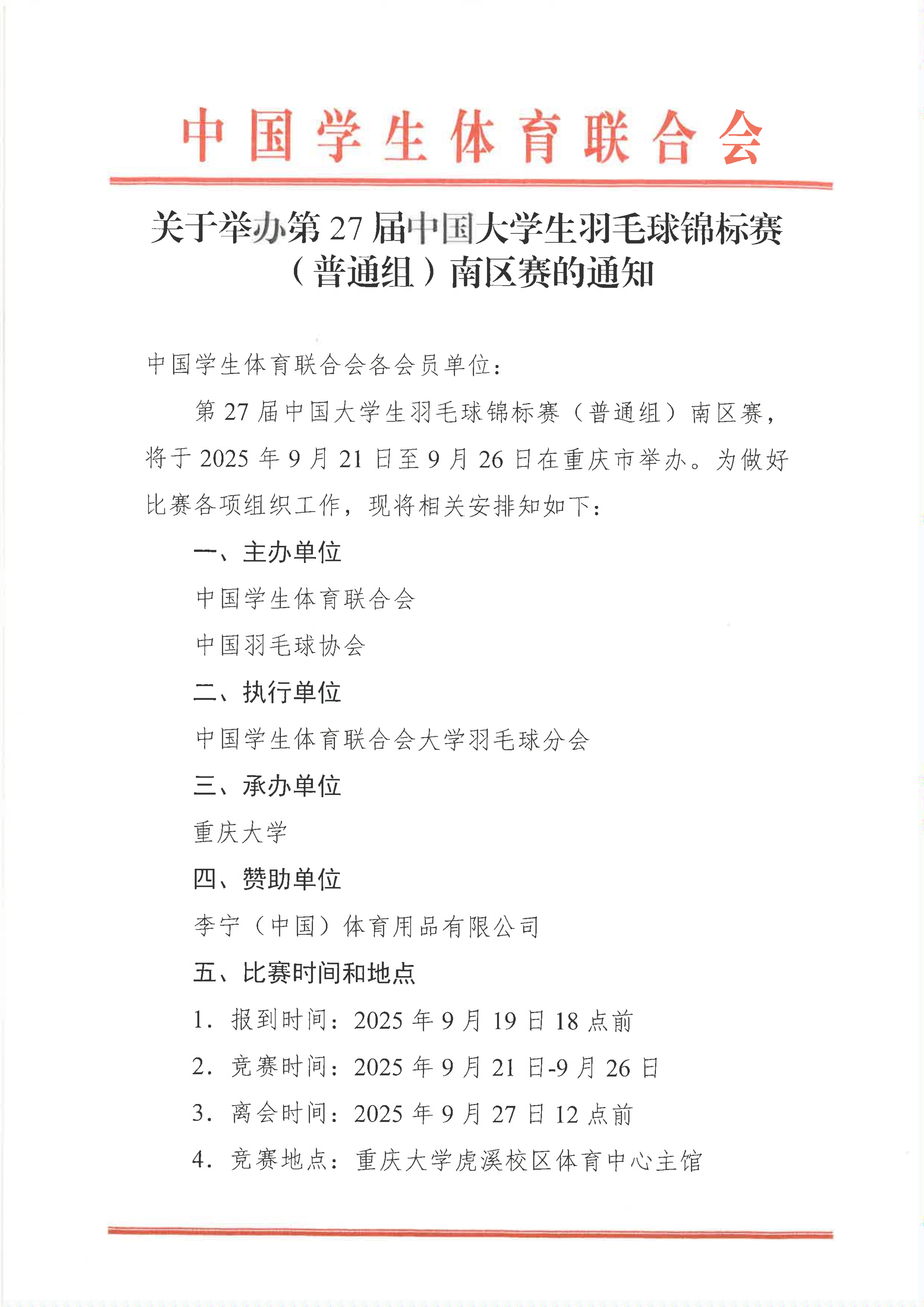 关于举办第27届中国大学生羽毛球锦标赛(普通组)南区赛的通知