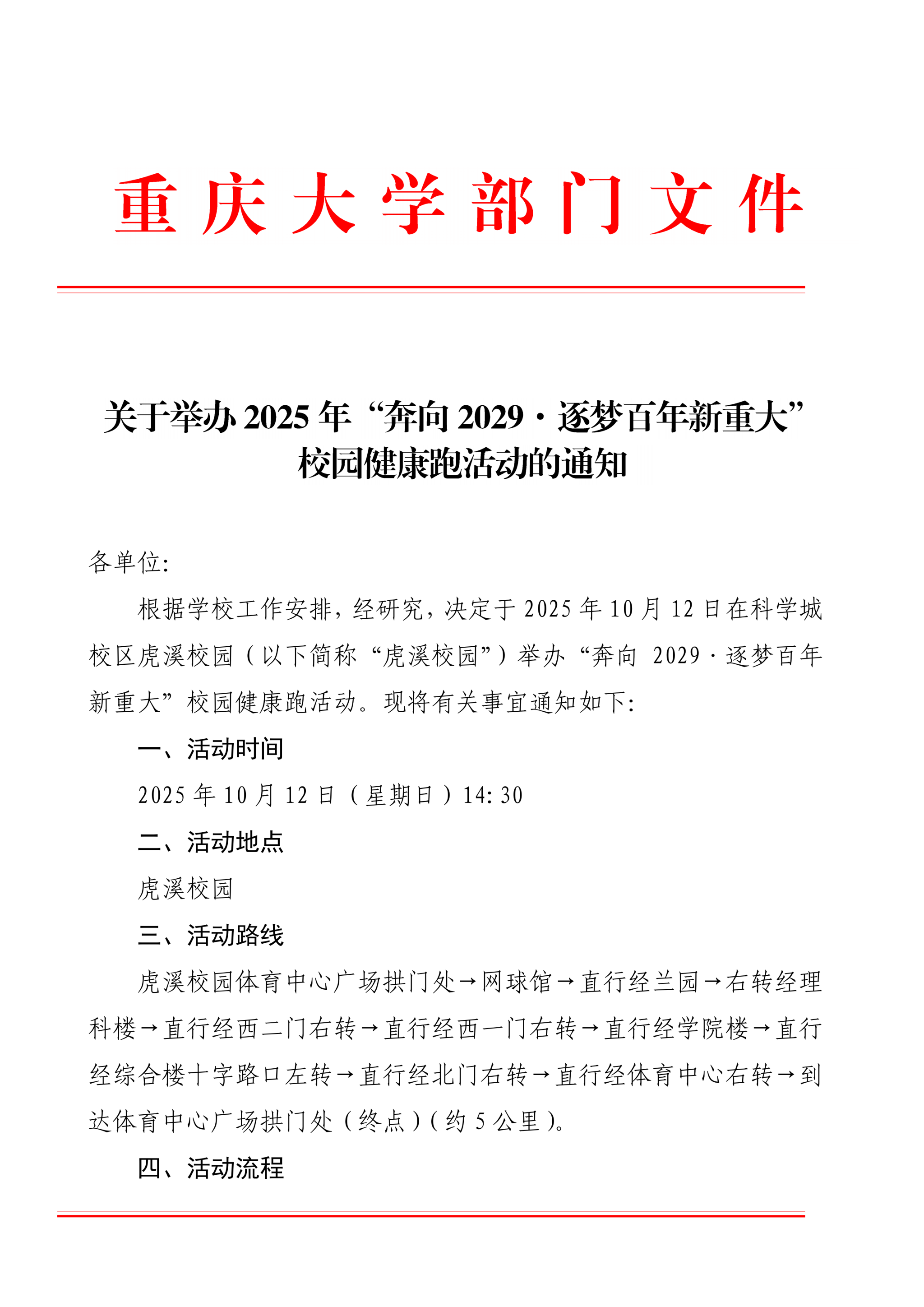 关于举办2025年“奔向2029·逐梦百年新重大”校园健康跑活动的通知