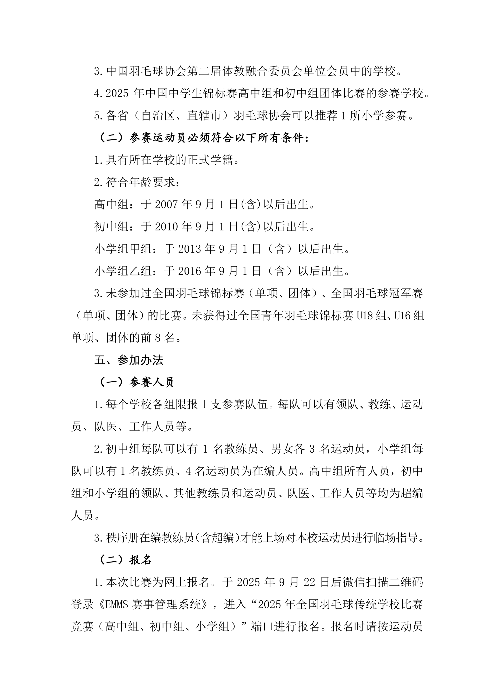 2025年全国羽毛球传统学校比赛(高中组、初中组、小学组)比赛竞赛规程