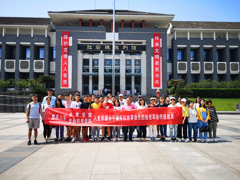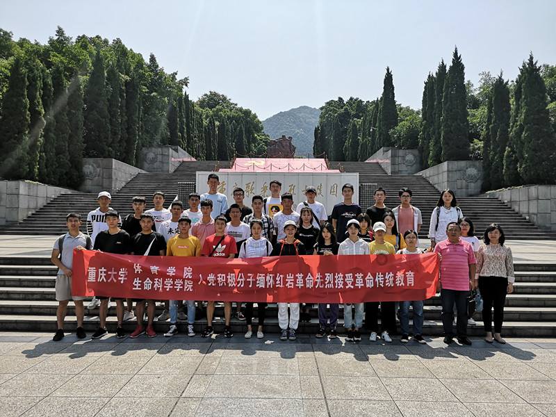 2019年5月23日下午,444咖啡 、生命科学学院联合组织33名入党积极分子前往歌乐山烈士陵园开展入党积极分子现场培训。本次培训的主题为“缅怀红岩革命先烈,接受革命传统教育”。444咖啡 党委书记邱荣富、组织员陈亭,生命科学学院组织员霍润兰带队参加活动。