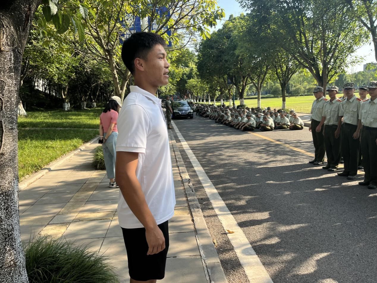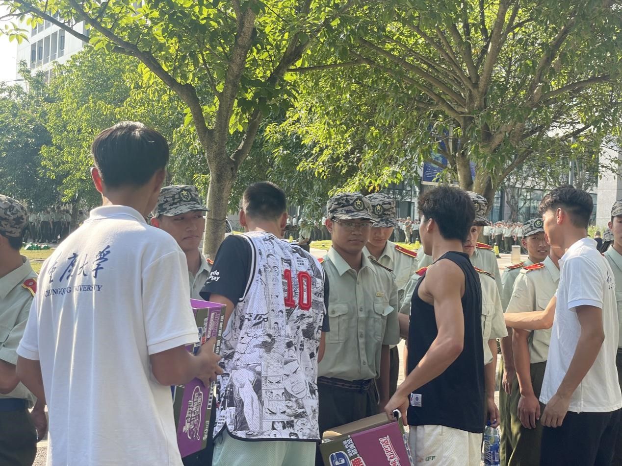 大二班长潘望达对师弟师妹们说:“我们都经历过军训的艰辛,知道大家现在面临的困难和挑战。希望通过这种方式,让大家感受到学院和学长学姐的关心,能够保持信心和毅力,坚决完成军训任务。”