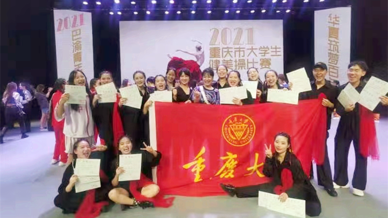 健美操队,以绝对优势大比分摘下了本次重庆市大学生健美操比赛规定啦啦操和排舞大赛的两个冠军。