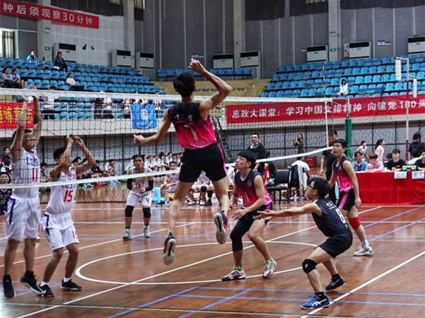 男子排球队和移通学院男子排球队的冠亚军比赛,为队员们加油助威。